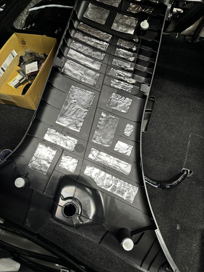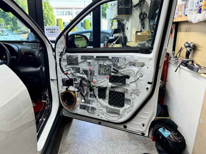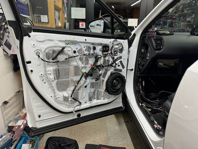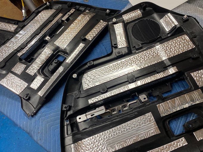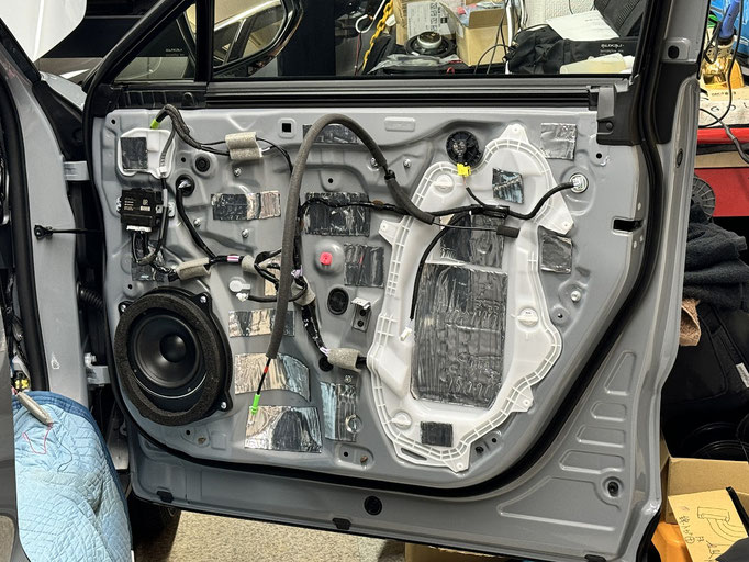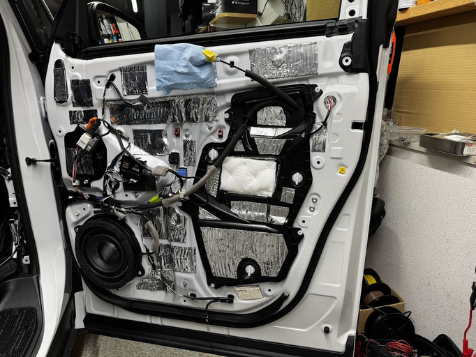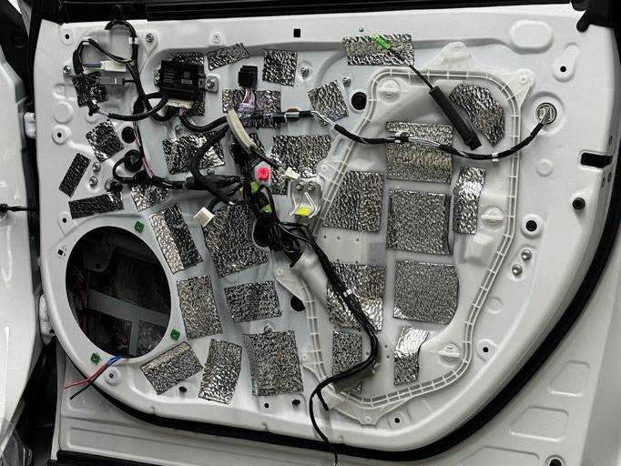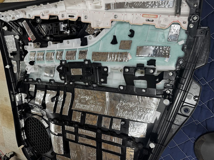 当店では1人で2025年現在まで何十台もの国産、国外車問わず施工している経験から車種、メーカーのその構造を見て音に効くデッドニングを施工いたします