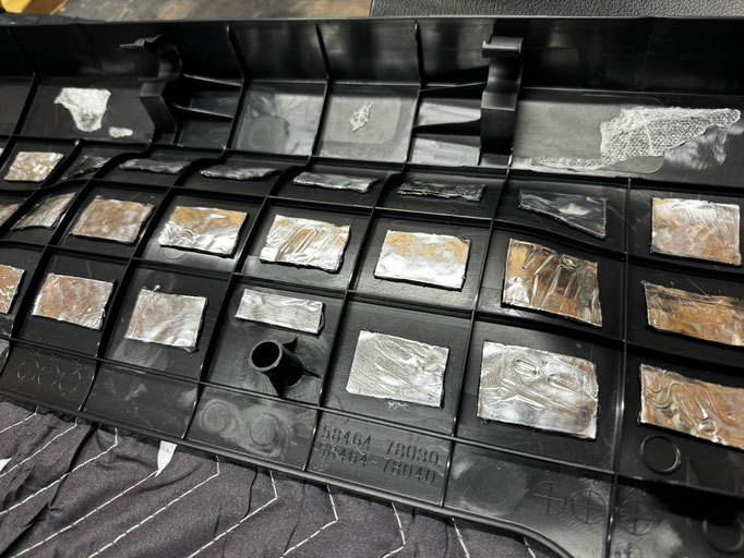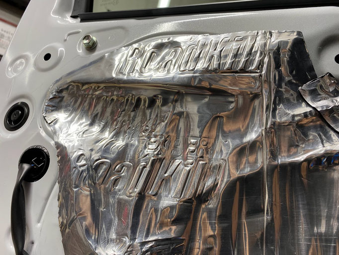お車のデッドニングとは、制振材や吸音材を車体の鉄板部分やプラスチックパーツに加工する施工です