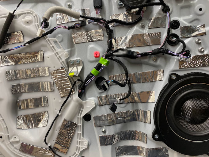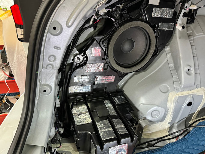 当店オリジナルの制振材や国内有名メーカー製の制振材を組み合わせ、アコースティックな響きと楽器等の質感が高くなるように鉄板や樹脂部の不要な振動を抑え込み、ハイグレードスピーカーの音を濁さないようにデッドニングいたします。